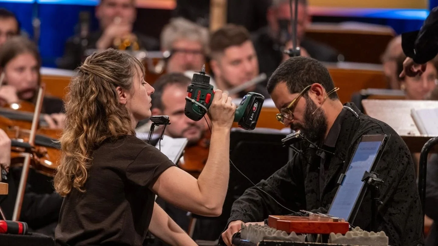 En koncert for kvartet af Hammondorgler og slagtøj, der udforsker de indre mekanismer i to store, ikoniske maskiner: Leslie-højttaleren og symfoniorkestret.